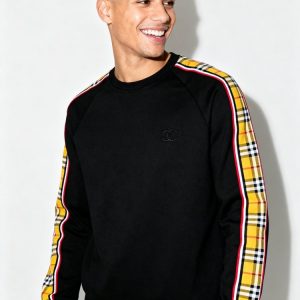 new men’s style 👦 original single quality pure cotton round neck checked sleeve edge sweatshirt