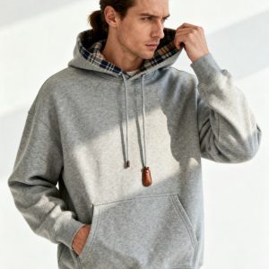 Men’s and Women’s Clothing 🚹 Exclusive Khaki Checked Hoodie – Cotton Casual Loose Hooded Sweatshirt – 100% Breathable Pure Cotton Fabric
