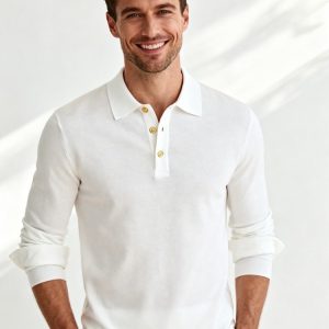 Men’s 👦🏼 Cotton Pique Mesh Fabric Matched with the Latest Exclusive – Casual Men’s Long-Sleeved Polo Shirt